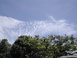 上空の雲が点々と列になって並んでいた。従って、下に映った影も点々と列になっていた。(写真右)
