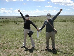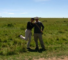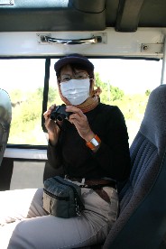 普通ならこんな格好をしていても土埃が体に入って来るそうだ。私達夫婦のサファリスタイル。(写真右)