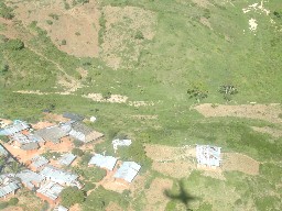 モンバサの空港が近くなると民家が見え始めた。トタン葺きの粗末な建物が多かった。(写真左)