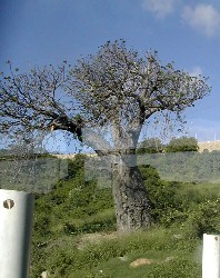 空港からモンバサ港へ向かう途中見かけたバオバブの木。(写真右)