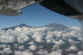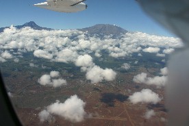 飛行時はキリマンジャロ山のすぐ横を飛んだ。キリマンジャロ山は隣国タンザニアの領土内にあるアフリカでも有数の高山である。