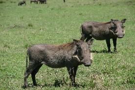 いずれも雄雌であろうか。シマウマ(写真左)とイボイノシシ(写真右)