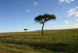 そして、もう一つの眺めはサバンナの中にぽつんぽつんと生えているアカシアの木。(写真左)