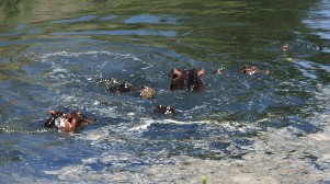 雨季とは言いながら川の水は少なく、どぶ川のような臭いさえしていた。それにも関わらずカバたちは浮かんだり沈んだりを繰り返していた。