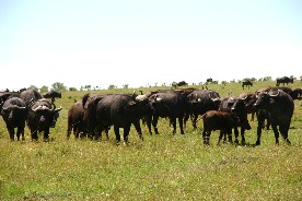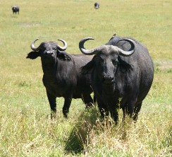 草食動物の中では最もどう猛だと言われているバッファロー。じっとこちらを見ている。