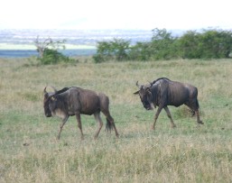 大抵、大きな群となって移動しているヌー(写真右)