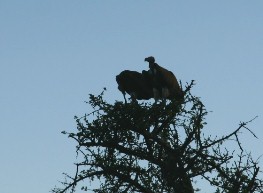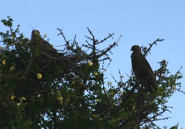 いずれもアカシヤの木のてっぺんにいたワシ(写真左)とハゲワシ(写真右)