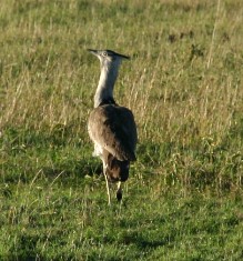 草原には動物ばかりではなく、こんな鳥もいた。これは養殖すれば食肉用にもなるという「ほろほろ鳥」。(写真左)