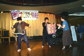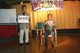 中国人よろしく片言が面白かったOさんとKさんの紐マジック。(写真左)