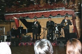 この日、演奏をしてくれたトパーズ号専属バンドの「ステップ・バイ・ステップ」(写真右)