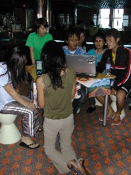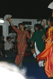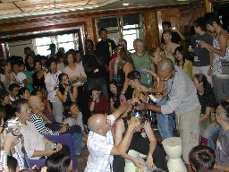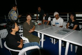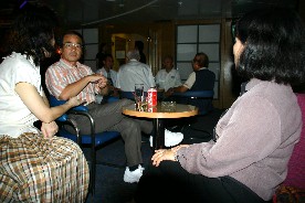私も参加した。カラオケボックスのないこの船にあってはカラオケファンがたくさん集まった。