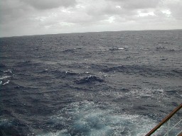 少し波の高い大西洋。しかし、海の色はインド洋で見た色と同じ紺碧に近かった。(写真右)