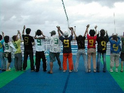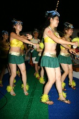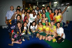 これは地球一周というTシャツで統一した男性チーム。こちらは踊りで勝負か。(写真左)