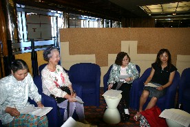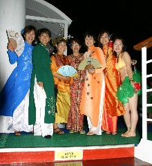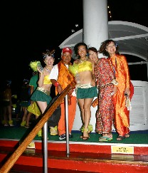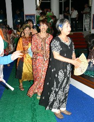 アジアンコスチュームをまとった熟年女性チーム。(写真左)