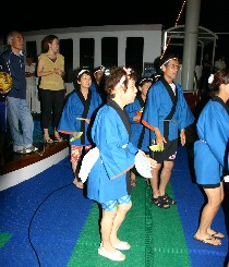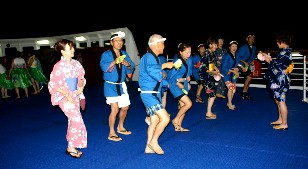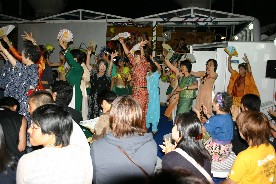 何はともあれ賑やかなのが一番と阿波踊りで盛り上がる。(写真右)