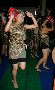 こちらはお色気むんむんのサルサ。赤と黒のコスチュームが何とも妖しい雰囲気。でも踊りは練習不足が。(写真左)