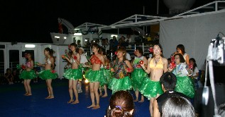 今夜はサンバカーニバルが屋上デッキプールサイドであった。家内達も出場するというので