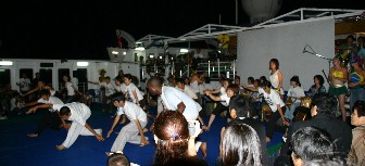 そんなスローカフェの開かれていた午後、突然サンバチームがラテンカーニバルの前宣伝のため踊りながら入ってきた。(写真上)