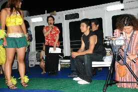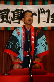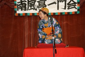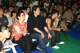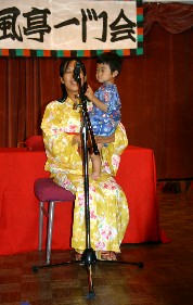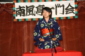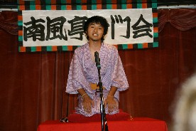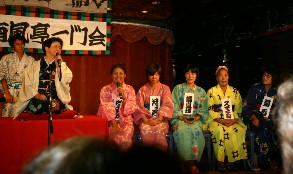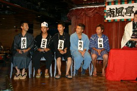 こちらは審査員席、菊千代師匠、中村さん、マシューが舞台を見ていた。「みんな良くやるなあ」とあきれ顔?。(写真右)