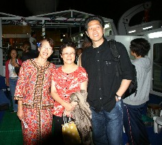 中村さんには感謝の気持ちを込めて寄せ書きのTシャツを贈った。中村さんとピースボートスタッフのAちゃん。(写真右)