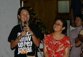 今夜の司会役だった二人。男性はメキシコ人のゴンザロさん、女性は南米滞在歴の長いTさんだった。(写真右)