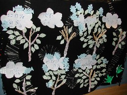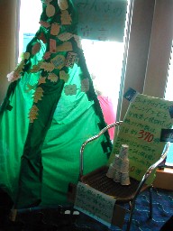 スローツリーにはスローカフェを訪れた人に色んな思いを書いて貰い貼り付けた。(写真上)