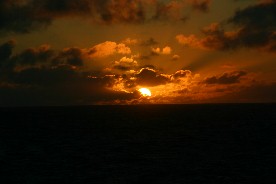夕方になると美しい日没が見られた。この時間になると水平線の彼方に沈む夕日を見ようと人が集まってくる。(写真右)