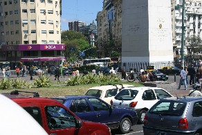 オベリスコ周辺は大勢の人や車で混雑していた。(写真右)