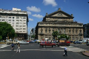 世界三大オペラ座と言われているコロン劇場。七月九日通りから見たところ(写真左)とその反対側から見たところ(写真右)