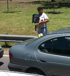 従って、犯罪も多いし、この写真のように定職もなく車のフロントガラスを掃除して小銭を貰ったり(写真左)、