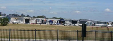 国内線の空港だろうか、小型機がたくさん停まっていた。(写真上)