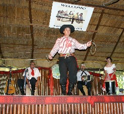 ショーが終わってガウチョ達が勢揃いして挨拶。会場からは拍手喝采だった。(写真左)