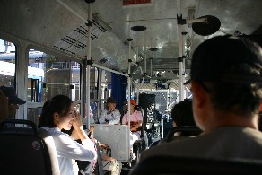 港を後にして通勤ラッシュの車で混雑する通りを抜けた。(写真左)