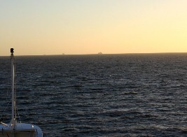 トパーズ号の遙か彼方には先に出港した船だろうか三隻の大型船が航行していた。(写真右)