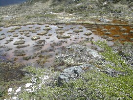 山小屋のすぐ下にあった大きな湿地帯。(写真右)
