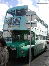 町の中にはこんな大きな二階建てバスも走っていた。(写真右)