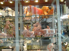 ここにもブラジルで見かけたような美しい石を加工したお土産が並んでいた。(写真左)