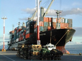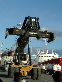 この港は荷物の中継基地になっているようだ。一度下ろされた荷物は再び積み込まれてどこかへ運ばれて行くようだ。