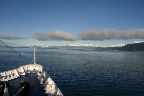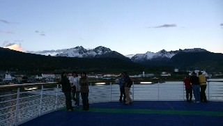 早朝、上甲板に出てみると外はまだ薄暗く非常に寒かった。しかし、船はウッシュアイア近く