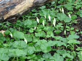 湿地帯をやっとの思いで抜けると山道だった。数種類しかないとの事で同じような木がたくさん生えていた。(写真左)