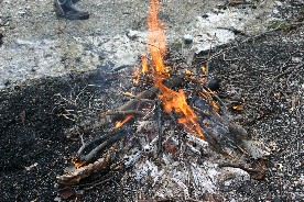 焚き火は疲れた私達を優しく迎えてくれた。(写真左)
