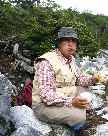 山小屋の山男達は大きなリュックサックを背負い、一足先にここまで来て昼食の準備をしてくれた。