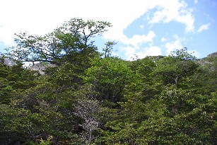 亜南極だと言われているこの地にあっては珍しく木々が密集していた。ガイドさんの話では植物