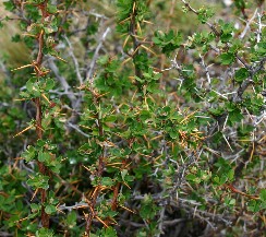 山に生えていたトゲのある木(写真左)や小さな笹の葉のような形の植物(写真右)