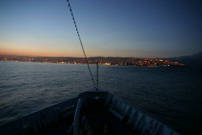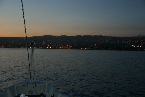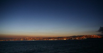 ている風光明媚な港町だった。沖合から見る港町は背後に小高い丘があり、その丘をオレンジ色の明かりが埋め尽