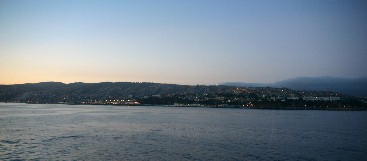 大きくテラスのある新しいタイプの客船であった。この丘は私達の船が停泊した埠頭の前にあ
