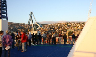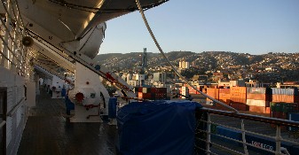トパーズ号のサイドデッキからバルパライソを写す。(写真左)