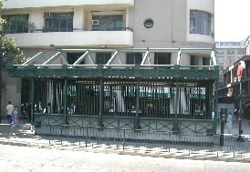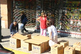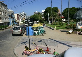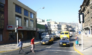 バルパライソの町にはいると露天商だろうか箱を並べて商売の準備をしていた。(写真左)