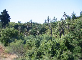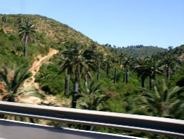 保養地ビーニャ・デル・マルが近くなった。目を覚ますと山には乱伐で少なくなったと言われている砂糖椰子が生えていた。