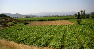 田園地帯だった。広いブドウ畑や野菜畑があった。麦の収穫期だろうか黄色く色付いた麦畑も